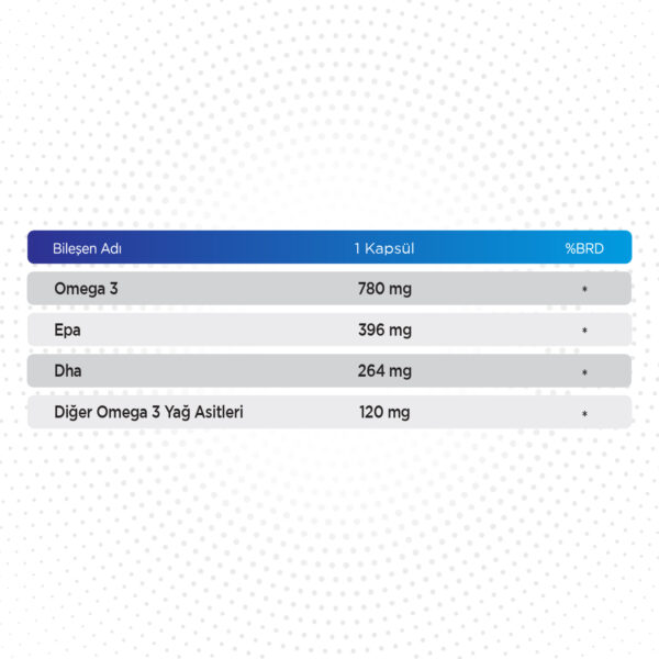 Omega 3 çoklu doymamış yağ asiti olup, insan beslenmesinde ve sağlığında önemli görevleri vardır. Omega 3 insan vücudunda depolanmaz bu nedenle düzenli tüketilmesi sağlık açısından çok önemlidir. EPA ve DHA, Omega 3 yağ asitleridir. EPA “Eikosa Pentaenoik Asit”, DHA ise “Dokosa Heksaenoik Asit” isminin kısaltılmış halidir. Hücrelerin temel yapısal bileşenlerinden olup, pek çok vücut fonksiyonunda görev alırlar.